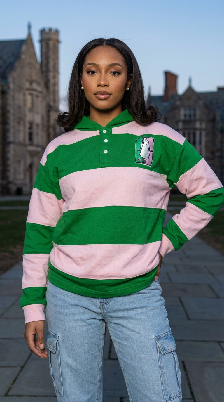 Just as sporty as it is stylish, this classic rugby features a hooded design, defined striping, and true to size, relaxed fit for an added vintage-inspired touch.