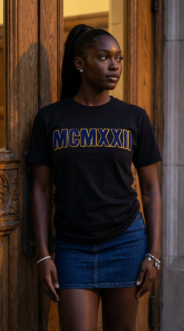 The Roman Numeral T-Shirt is an essential in every fashionable Pretty Poodle's closet! Featuring the founding year 1922 in roman numerals, this t-shirt is light weight and capable of being worn in all seasons. It is versatile enough to wear by itself in hotter weather and as a layering piece in cooler weather. Order yours today!