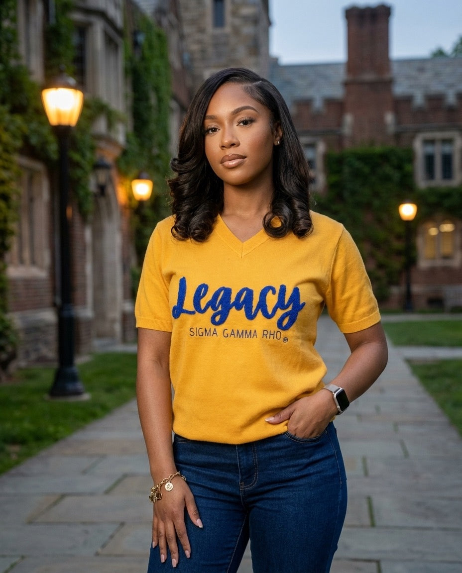 The Legacy V-Neck is sure to make your legacy smile! This sweater is light weight and capable of being worn in all seasons. It is versatile enough to wear on the yard, to chapter meetings or a night out with your sisters!